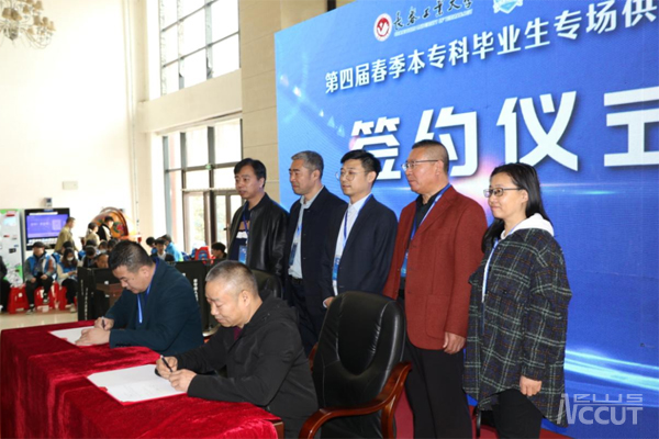 洽谈会现场,学院党委副书记谷阔代表学院与数据加长春科技有限公司、凯世曼铸造长春有限公司、吉林建龙钢铁有限责任公司3家用人单位签订了人才战略合作框架协议。