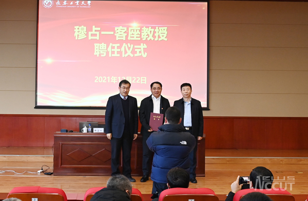 首先,学校举行了客座教授聘任仪式,聘请穆占一为学校客座教授,校长张明耀为穆占一颁发了聘书。