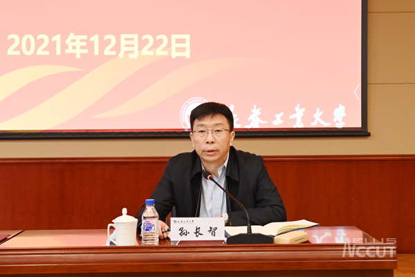 孙长智就学习贯彻十九届六中全会精神提出要求,各基层党委、各相关单位、各部门要按照学校《关于学习宣传党的十九届六中全会精神的实施方案》要求,认真组织开展全会精神的学习宣传,使广大党员干部、师生员工深刻领会“两个确立”的决定性意义,坚定捍卫“两个确立”,坚决做到“两个维护”,始终在思想上政治上行动上同以习近平同志为核心的党中央保持高度一致,切实把全会精神转化为推动学校事业高质量发展的磅礴伟力,让全会精神在工大落地落实。