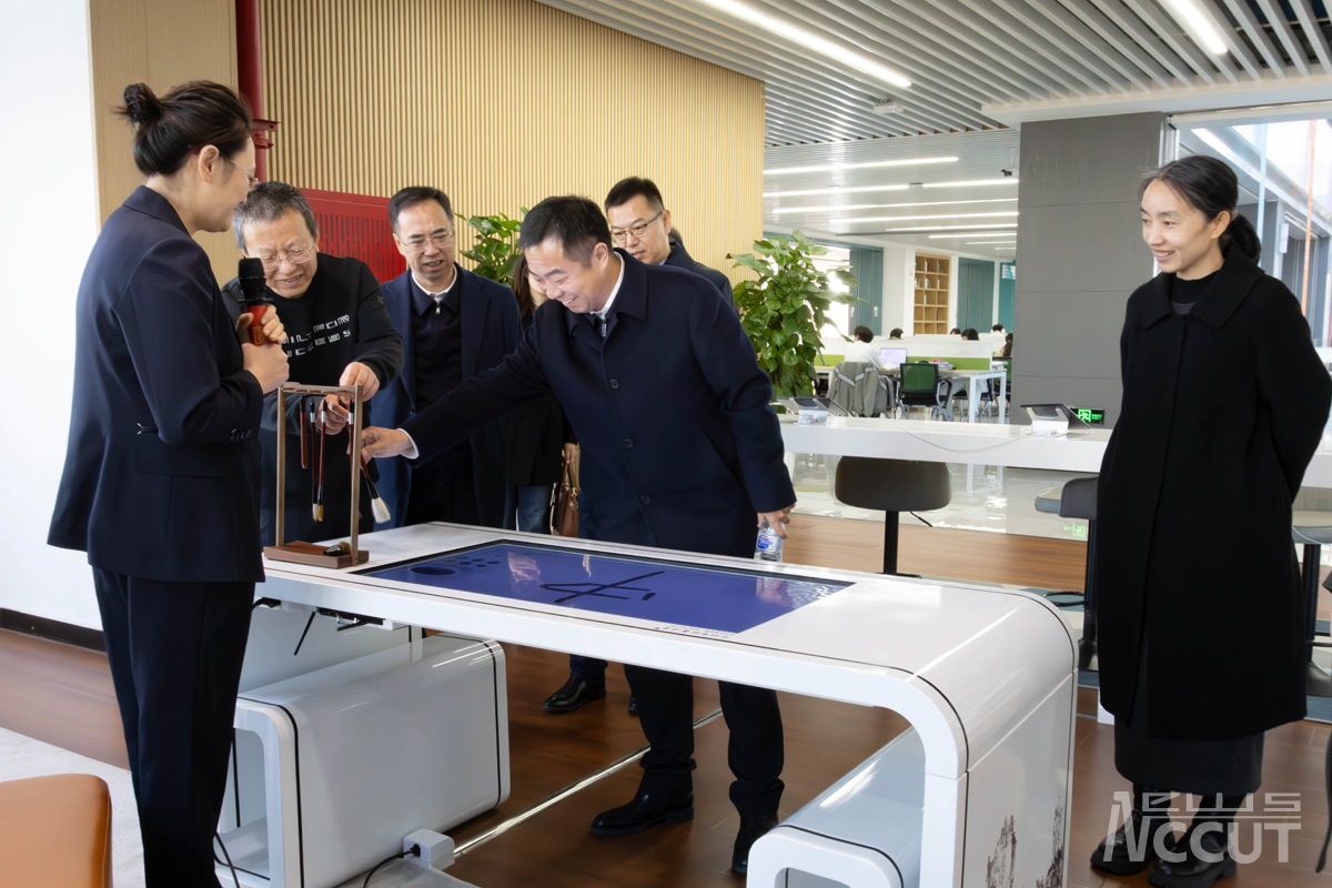 李源一行先后调研了学校红色文化主题教育践习中心、学校北湖校区规划沙盘、数字校园调度中心、博厚图书馆。随后,双方在博厚图书馆一楼会议室召开座谈会。