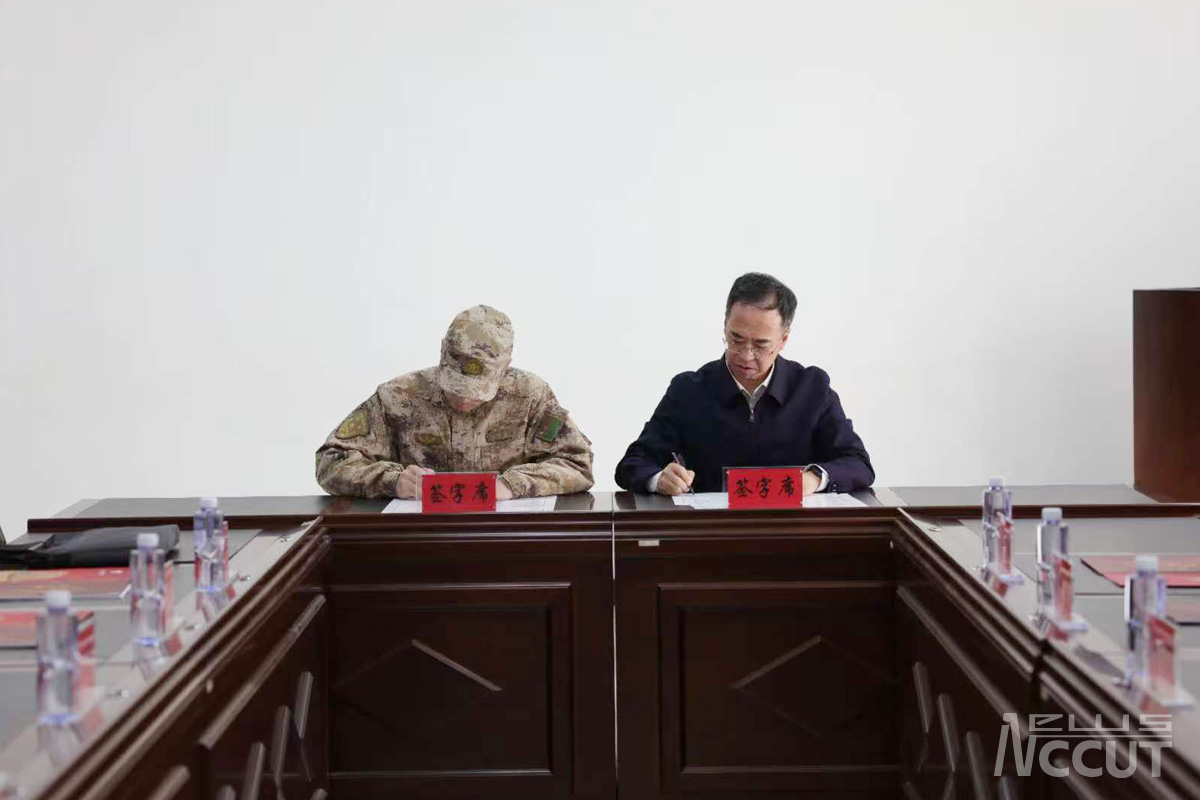 看望慰问共建部队官兵结束后,学校领导一行来到白城某部队,与部队首长座谈交流并签署共建合作协议。下一步,军校双方将在人才联合培养、科学研究、重点项目合作等领域开展深度合作,推动资源共享、优势互补,助力国防科技事业与高等教育事业协同发展。