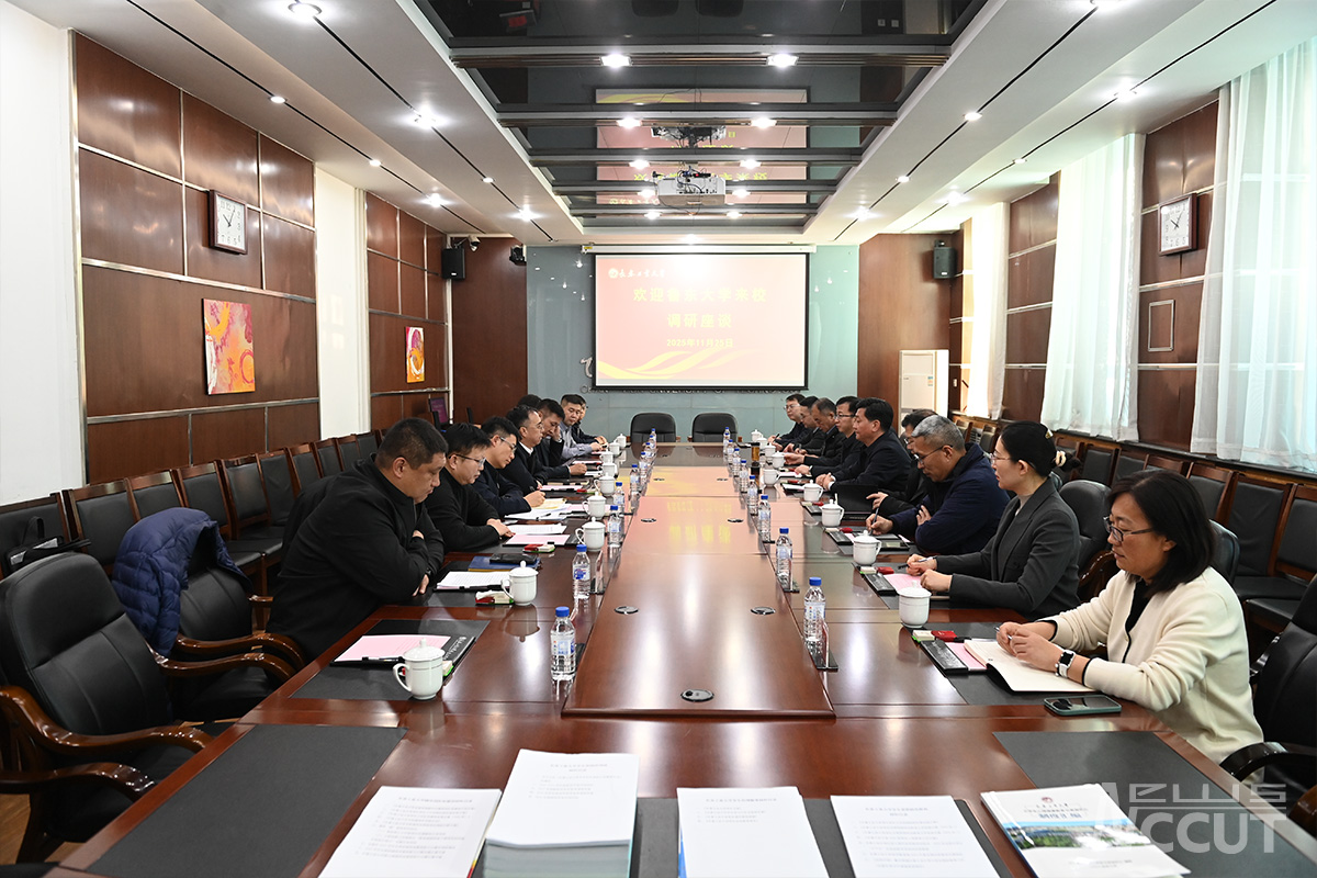 新闻网讯(通讯员 田兵 张宁)11月25日,鲁东大学党委常委、副校长毕研强率队到校调研。学校党委常委、副校长胡刃锋在南湖校区主楼二楼会议室热情接待来访一行并进行座谈交流。