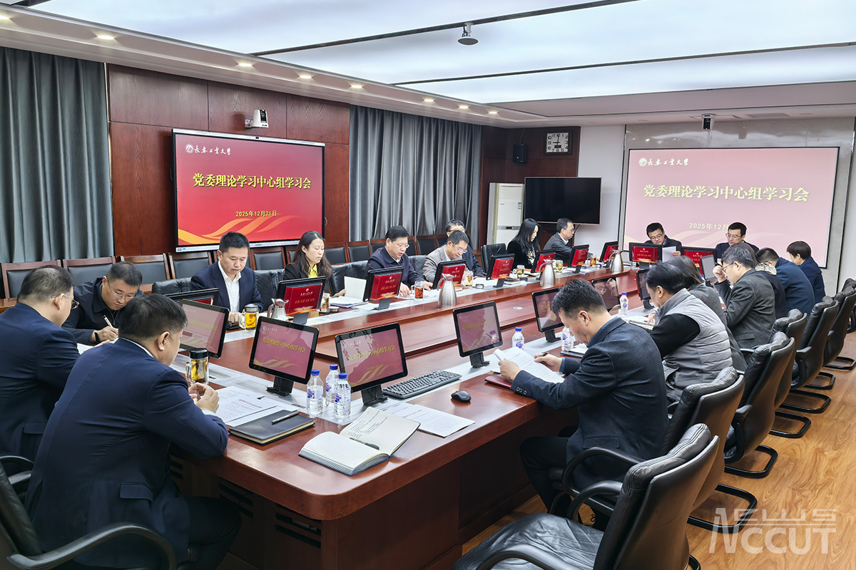 新闻网讯(通讯员 徐培鑫)12月21日,学校在办公楼五楼会议室召开党委理论学习中心组学习会。校党委理论学习中心组成员,发展规划与政策法规处、教务处、科学研究处负责人参加会议。党委书记陈权主持会议并讲话。