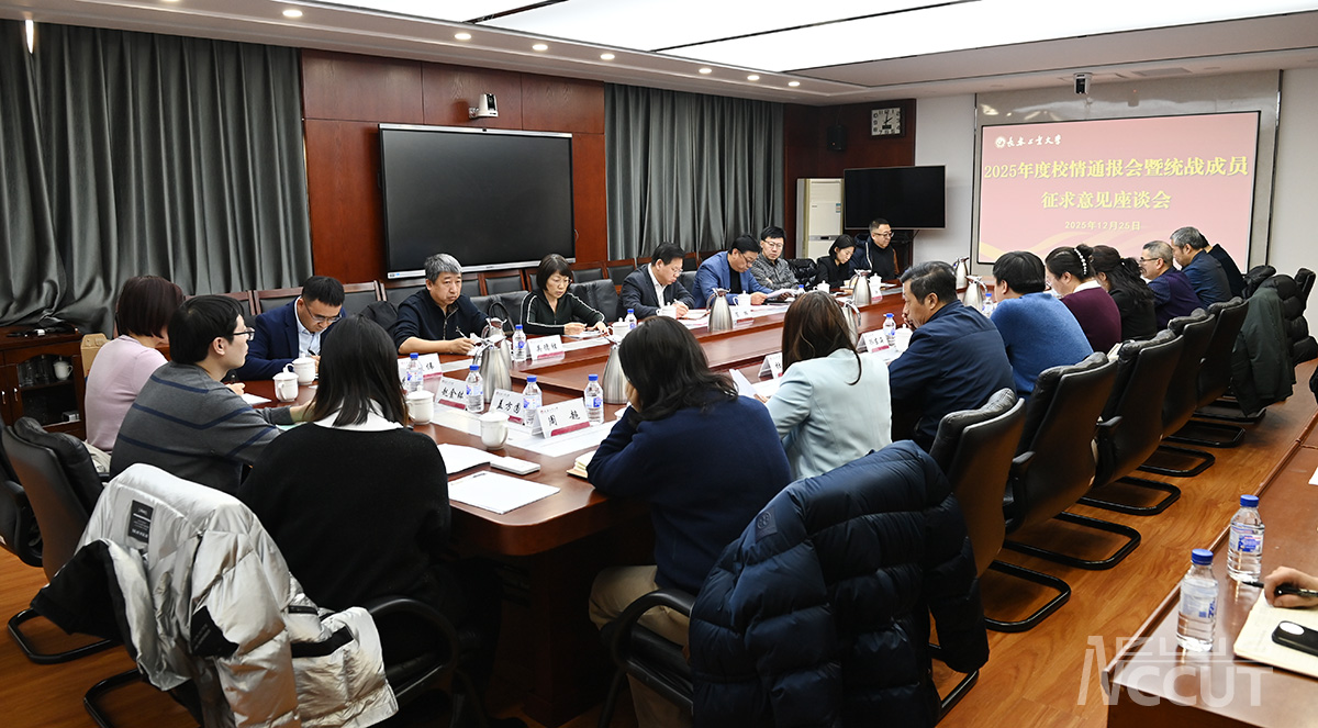 新闻网讯(通讯员 马旭)为增进沟通协商,凝聚广大统战成员智慧力量,提高学校事务决策和“十五五”规划编制的民主科学性,12月25日下午,学校在办公楼五楼会议室召开2025年度校情通报会暨统战成员征求意见座谈会。党委书记陈权出席会议并发表讲话,学校各民主党派、统战团体负责人及成员代表参加会议。会议由党委常委、统战部部长郭立祥主持。