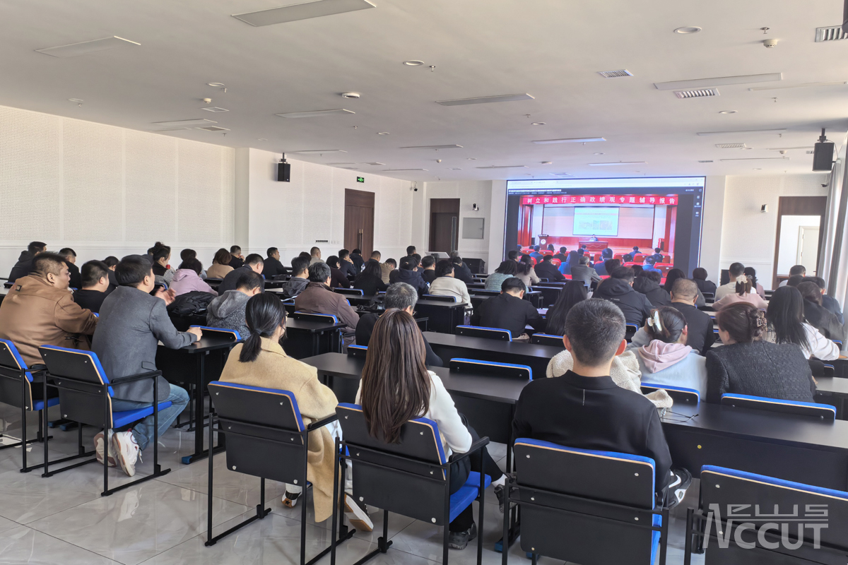 付跃刚在主持时指出,报告主题鲜明、内涵深刻,既深化了全校党员干部对正确政绩观的理解和把握,又为学校“十五五”时期高质量发展明确了方向、注入了动力,对推动全体教职工立足岗位、实干笃行,创造经得起实践、人民和历史检验的教育实绩具有重要指导意义。同时强调三点意见:一是深化学习领会,筑牢思想根基。全校各级党组织和广大党员干部要认真学习、深刻领会报告精神,准确把握正确教育政绩观的核心要义,切实把思想和行动统一到学校党委的决策部署上来,始终坚守为党育人、为国育才的初心使命,推动学习教育走深走实、入脑入心。二是坚持学以致用,推动工作落实。要把学习成效切实转化为履职尽责、干事创业的实际行动,紧扣学校“十五五”发展规划和创建国内一流地方工业大学的奋斗目标,聚焦人才培养、师资建设、文化传承、精细化管理等重点工作,将正确政绩观贯穿教育教学、管理服务全过程、各环节。三是强化责任担当,凝聚奋进合力。全体党员干部要以此次学习教育为契机,牢固树立和践行正确政绩观,以扎实行动和有效作为推动学校事业行稳致远,切实把学习教育成果转化为推动学校高质量发展、服务师生群众的实干实绩,努力建成让党放心、师生自豪、人民满意、社会认可的一流地方工业大学,为助力教育强国建设贡献工大力量。